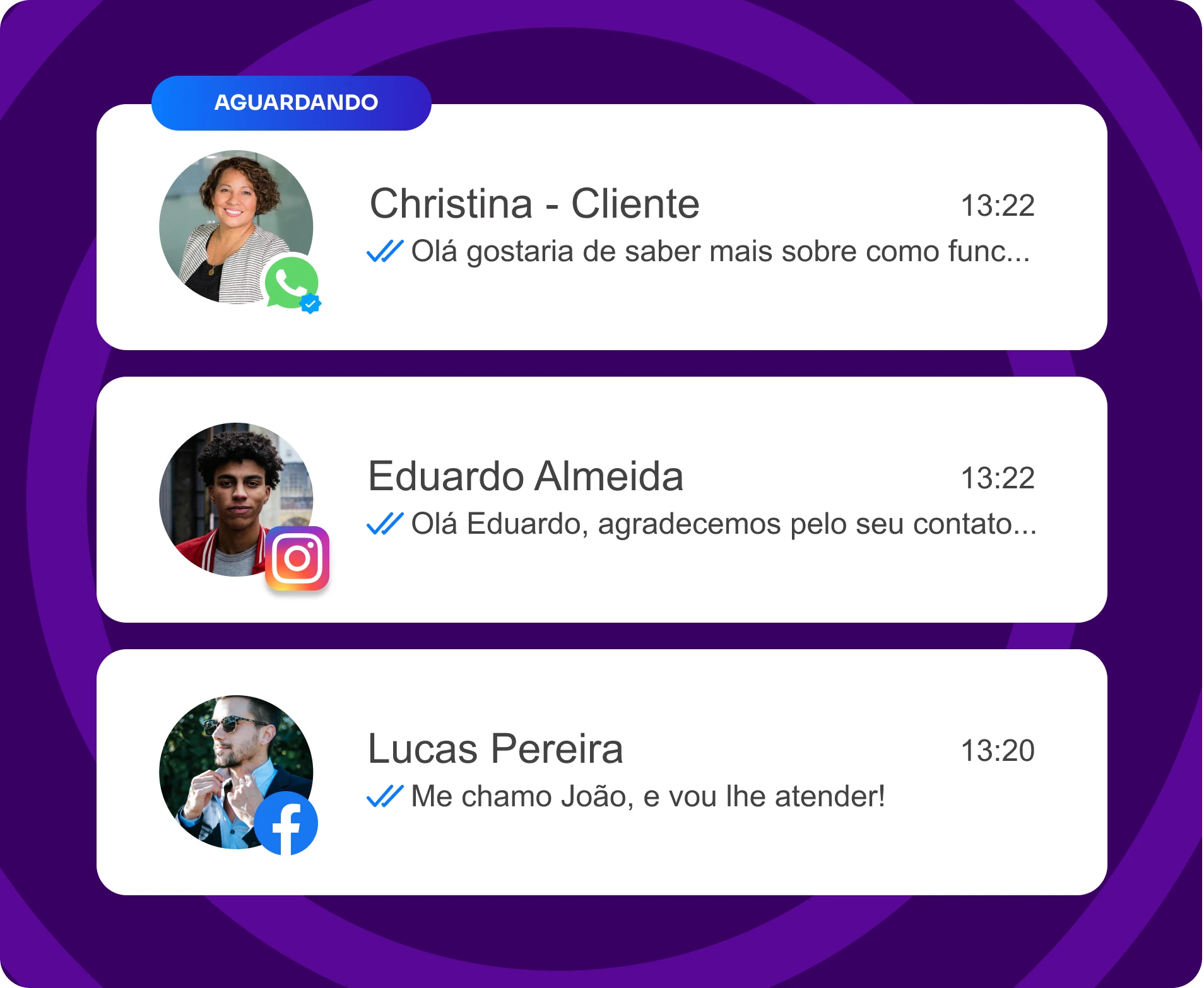 Simplifique sua comunicação integrando WhatsApp, Instagram, Facebook, Telegram, Webchat e Mercado Livre em uma única plataforma.
